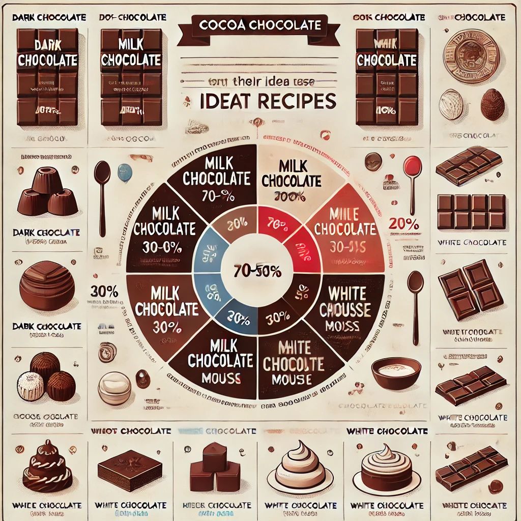 – Yoğun ve bitter tatlar için → %70 ve üzeri kakao oranına sahip çikolatalar.